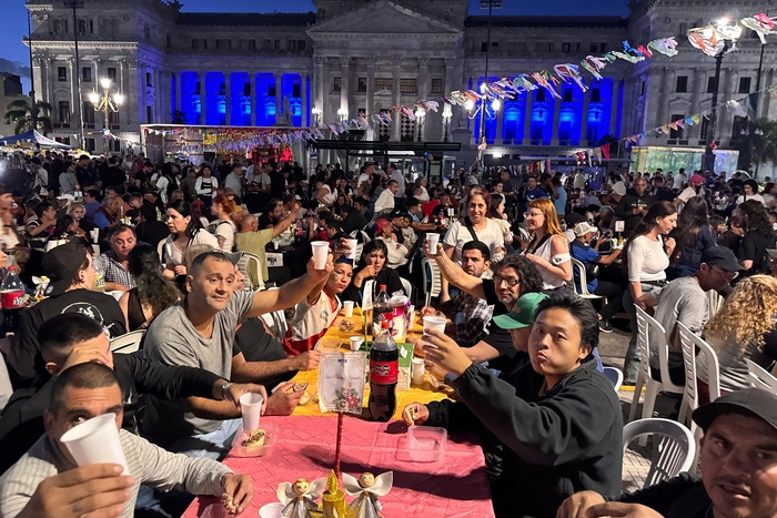 Una marea humana transformó en pocas horas la Plaza Congreso en el patio de una familia enorme. Adentro del Palacio Legislativo, el eco de las leyes que en el primer año de Javier Milei como presidente golpearon duramente a las clases trabajadoras. Afuera, una fiesta callejera reunió a miles para compartir la Nochebuena. Desde la tarde del martes 24 de diciembre, voluntarios, personas en situación de calle, o que simplemente no querían pasar solas la Navidad, protagonizaron un abrazo colectivo que significó mucho más que una cena.