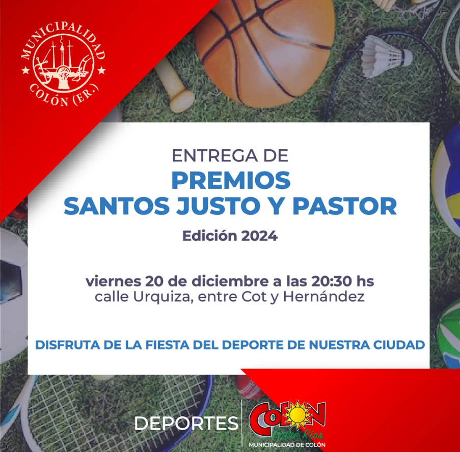 Este viernes 20 de diciembre a las 20:30 hs, el municipio de Colón, celebra la gran fiesta del deporte local, se llevará a cabo en calle Urquiza (entre Cot y Hernández).