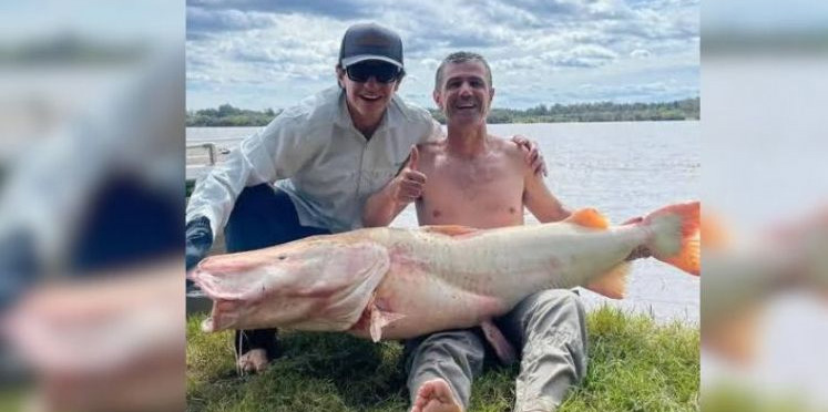 Extraordinario, capturaron en Concordia un Surubí albino de 50 kilos y lo devolvieron al río Uruguay