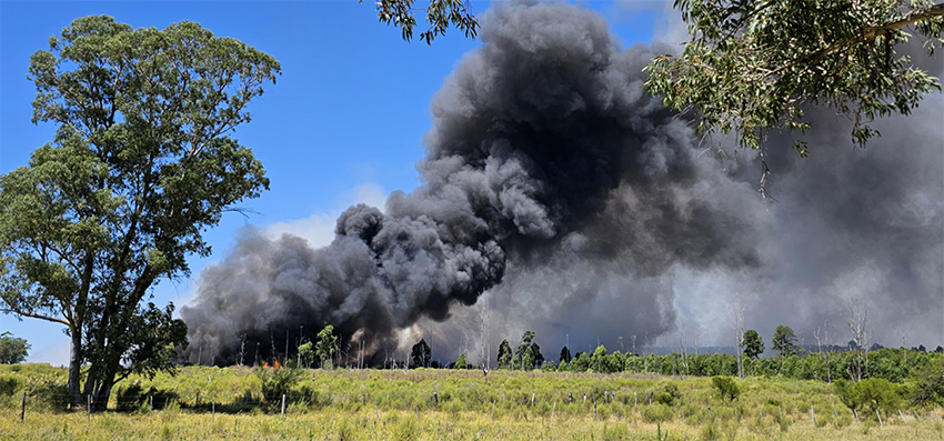 Según informaron desde el lugar del hecho, trabaja arduamente personal de bomberos voluntarios de San José, Villa Elisa, Colón, Villaguay y Concepción del Uruguay