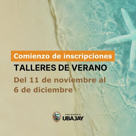 Se informa desde el municipio de Ubajay, que desde el 11 de noviembre al 6 de diciembre, próximos, podes anotarte en el Área de Deportes de 8:00 a 12:00 hs. en los Talleres de Verano.