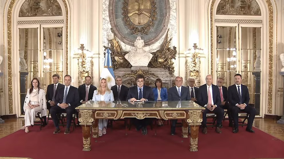 El líder libertario volvió a diferenciarse de “los políticos” y anticipó que en 2025, a pesar de haber elecciones, desde la Casa Rosada continuará el ajuste: “A diferencia de lo que suelen hacer los políticos, que en los años electorales se dedican a despilfarrar la plata de todos los argentinos como si fuera propia en búsqueda de votos, nosotros vamos a hacer algo distinto: Vamos a continuar nuestro programa de ajuste para poder bajar impuestos y devolverle el dinero al sector privado. En esa línea vamos a hacer una reforma impositiva, una reforma previsional, una verdadera reforma laboral; una reforma a las leyes de seguridad nacional, una profunda reforma penal, una reforma política, y otras tantas reformas que el país se debe hace décadas”.