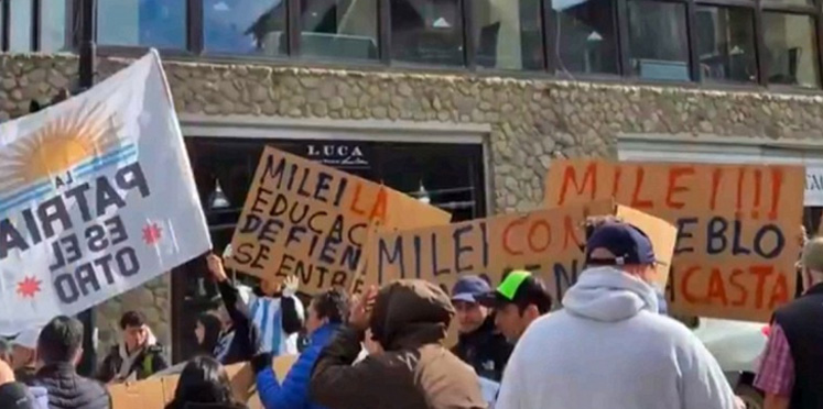 Por motivos de seguridad a raíz de las movilizaciones en contra, la convocatoria para la caminata con el Presidente – que era a las 18 en San Martín y Don Bosco – finalmente cambió para un encuentro entre Milei y simpatizantes en la puerta del Hotel Albatros, base de las actividades presidenciales en la ciudad.