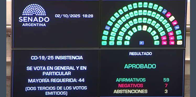 Las dos leyes fueron insistidas con dos tercios de los votos y recuperan vigor. La primera obtuvo 59 adhesiones, mientras que la segunda consiguió 58. Expectativa por el próximo movimiento del Ejecutivo, que días atrás dilató el giro de fondos para la también reactivada norma sobre discapacidad