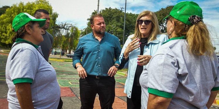 Dos trabajadoras municipales están a cargo de las tareas en el espacio público. Se promueve la responsabilidad ciudadana, el respeto a las normas de convivencia y el cuidado del lugar para el disfrute de todos.