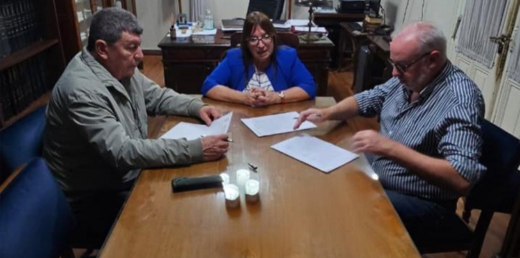 Las firmas de los contratos se concretaron en la oficina de la Escribanía Mayor de Gobierno y estuvieron encabezadas por el presidente del IAPV, Manuel Schönhals. También participaron la escribana Mayor, Sandra Taborda, y el representante de la empresa constructora, Carlos Haure.