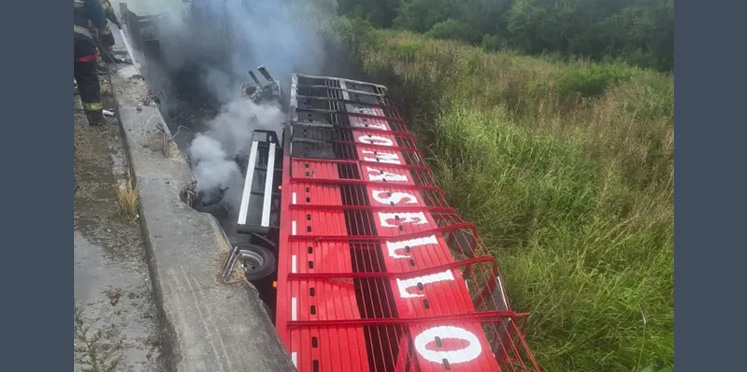 Por causas que aún se investigan, el camión jaula se despistó en una curva y cayó al vacío. Como consecuencia del violento impacto, la cabina del rodado se incendió, provocando el fallecimiento del conductor en el lugar.