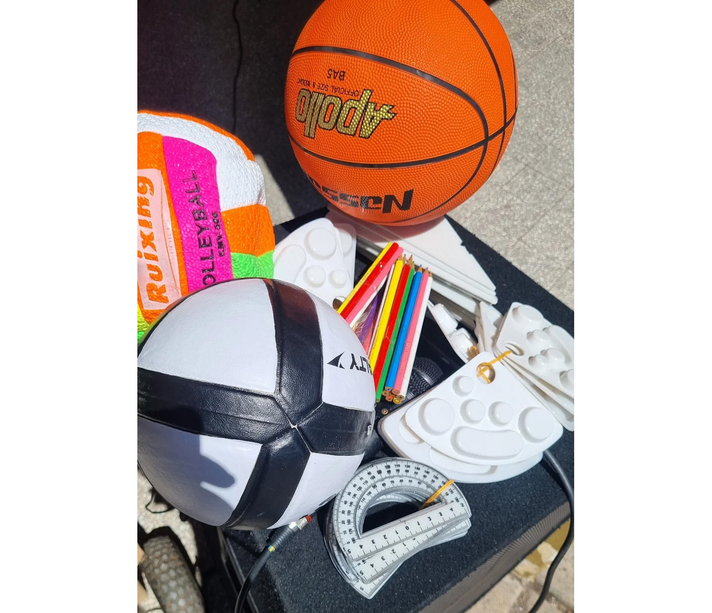 Cada establecimiento recibió lápices, reglas, transportadores, escuadras, bandejas para acuarelas, pelotas de básquet, fútbol y vóley.